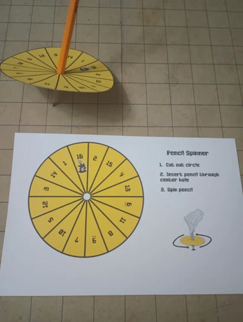 Like the picture shows, the game comes with a template for a pencil spinner for a d16, because who the heck has a d16? It also uses the standard rpg dice set.